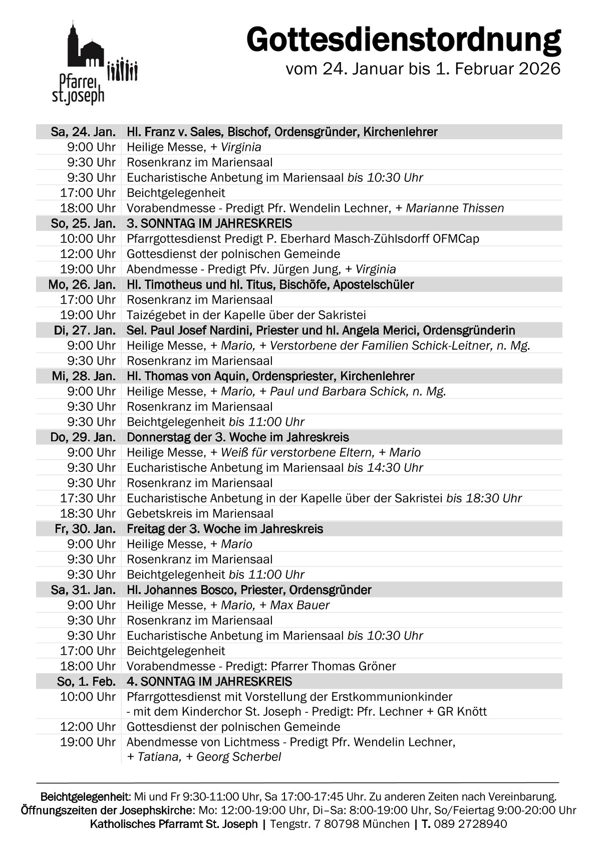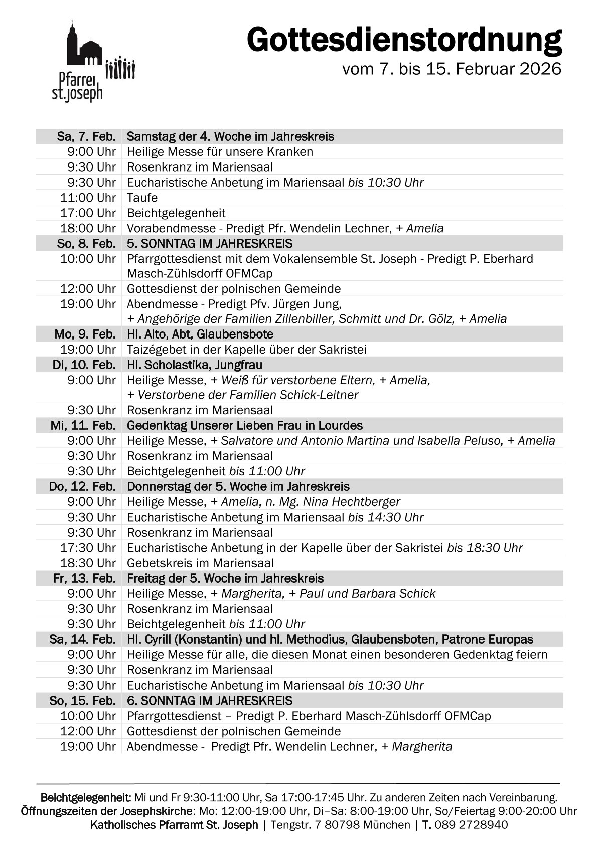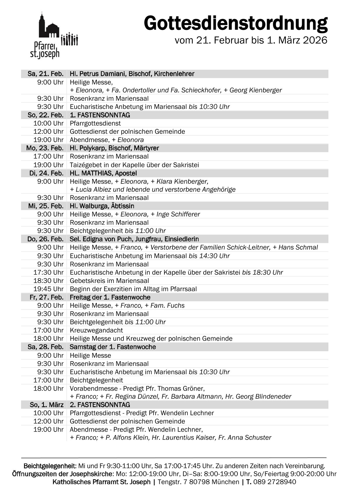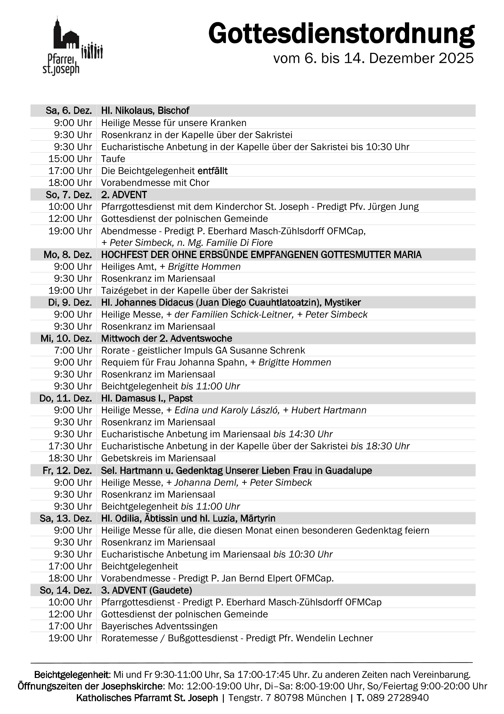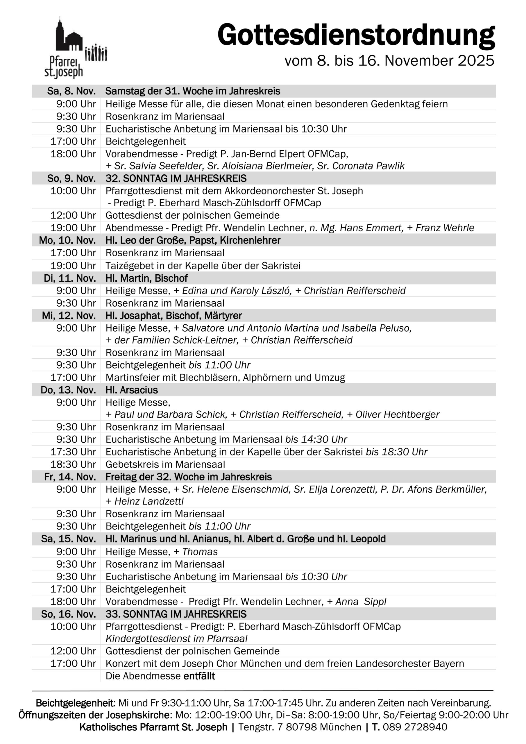 So steht es ganz oben auf der Fassade unserer Josephskirche. Mit diesen Worten begrüße ich auch Sie herzlich. Die Pfarrei St. Joseph kommt ganz aus der Tradition des franziskanischen Ordens der Kapuziner, die über 100 Jahre hier ein Kloster unterhielten. Heute wollen wir als Pfarrei mitten in der Stadt weiter eine Gemeinschaft sein, die das Wort Gottes hören und leben möchte. Wir freuen uns, wenn auch Sie bei uns eine geistliche und freundschaftliche Heimat finden. Willkommen in St. Joseph!